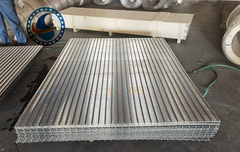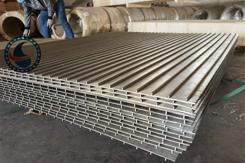 تتكون اللوحة الملحومة بسلك على شكل إسفين من سلك ذو شكل V وقضبان الدعم الطولية. يمكن لكل نقطة تقاطع للوحة ذات الشكل V تجنب الانسداد، والتأكد من عدم إعاقة الماء.